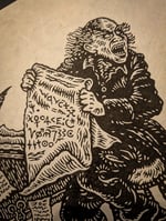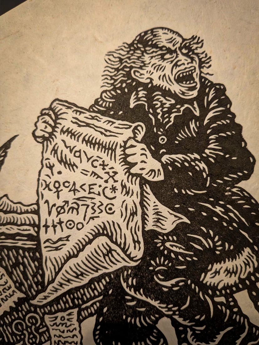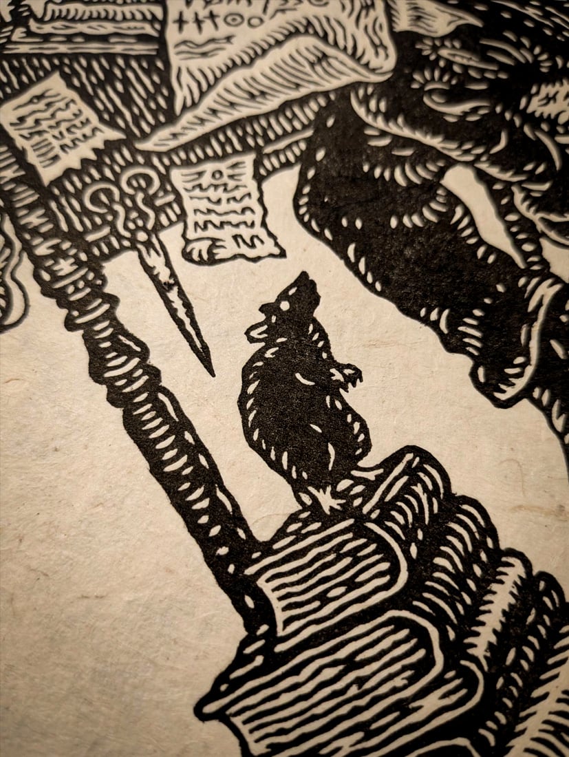 A4 lino print on handmade thick lokta paper.